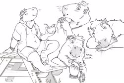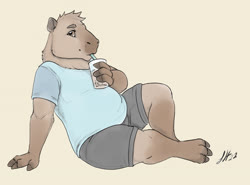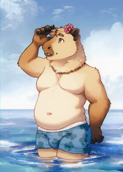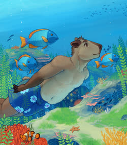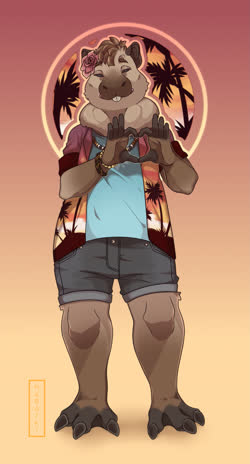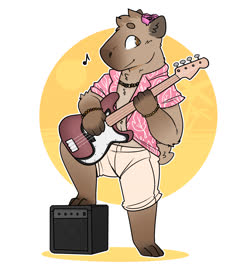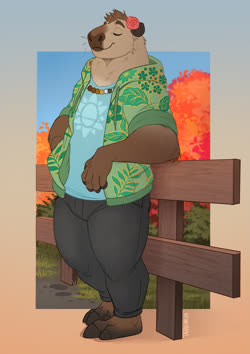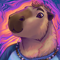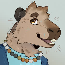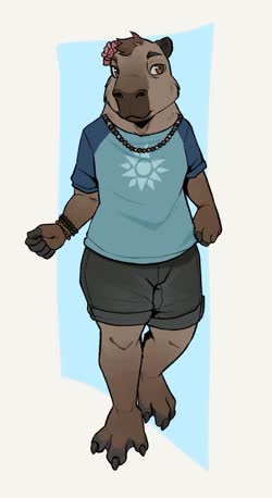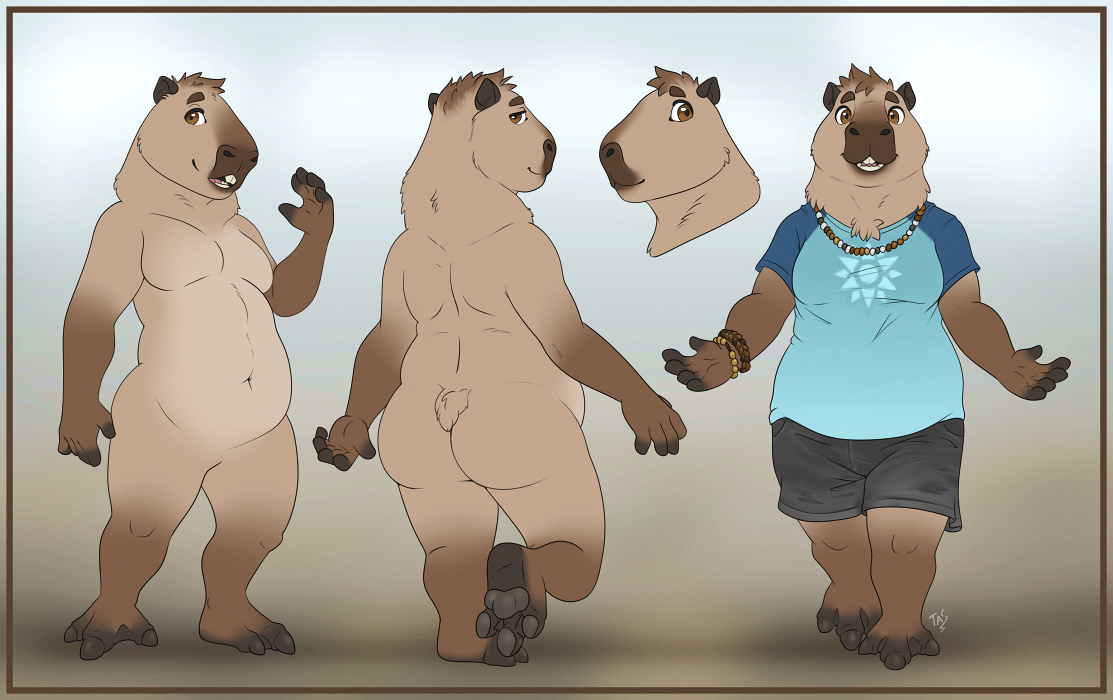 This is Weaver! He's a capybara! I'll include his reference by Noviraine! He's my second fursona after Reed, made in checks notes 2021... has it been that long already? I was thinking about making a capybara 'sona for a while, when a friend said she sometimes thought I should a capybara. So here I am, and here's Weaver!