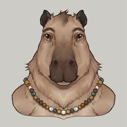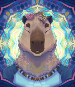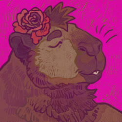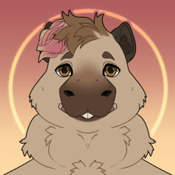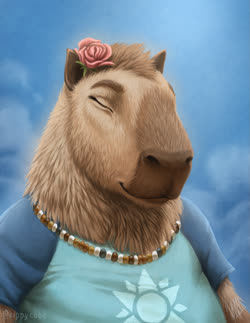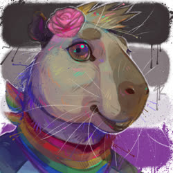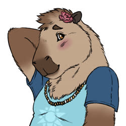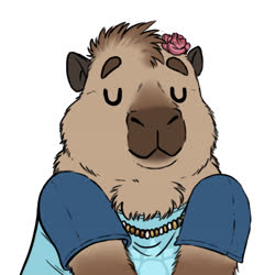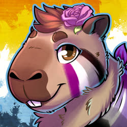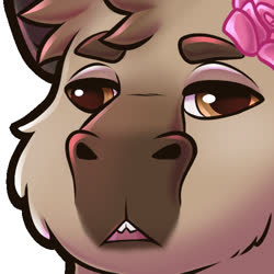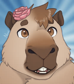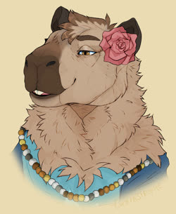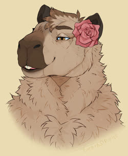 The pink rose? Was a option on the capybara VRChat model by Bento, and switched back on after it was retextured by the aforementioned friend. Eventually I started asking for it to be included in commissions.